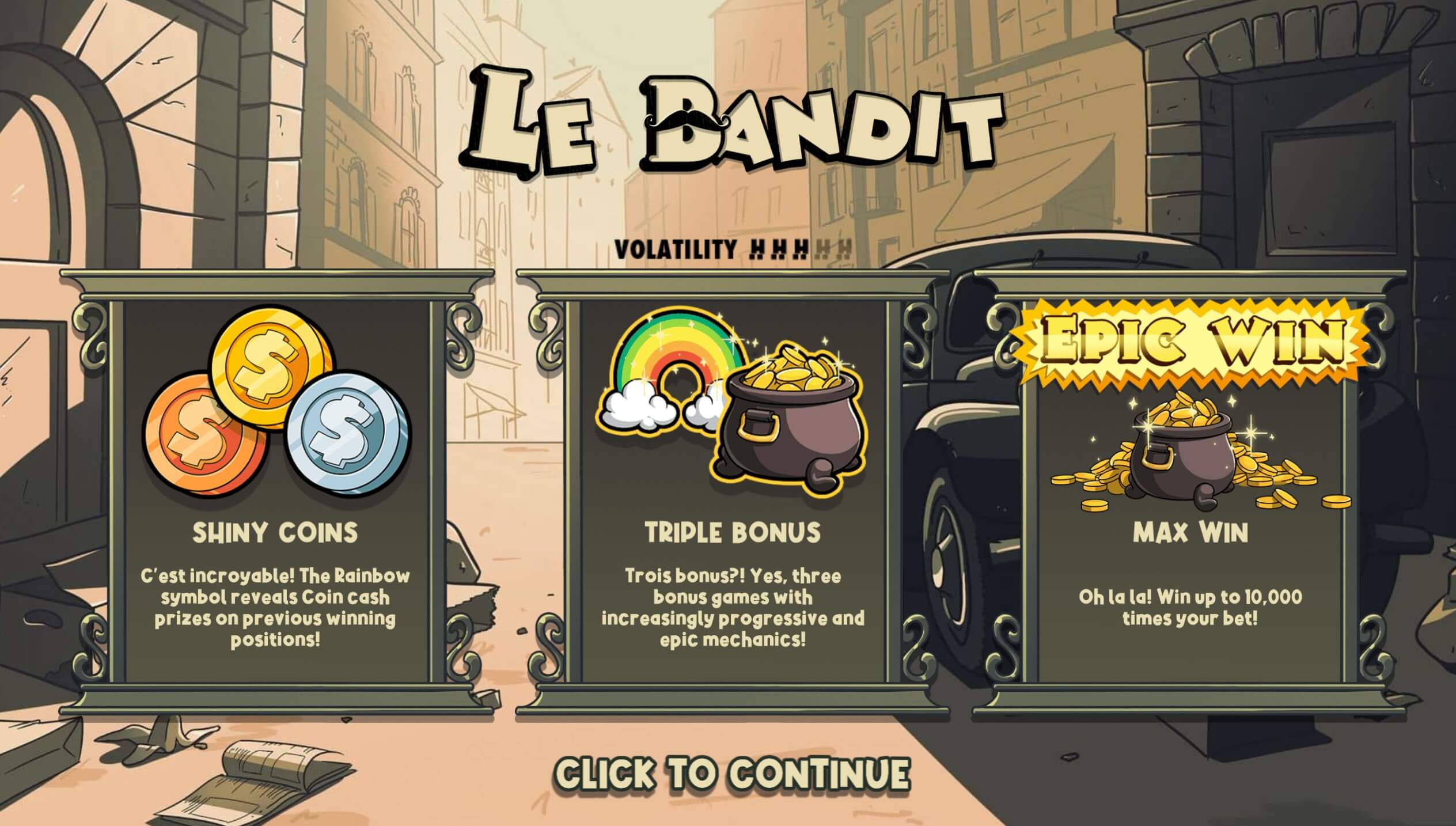 Ansvarsfraskrivelse: Le Bandit kendetegn/certifikat er i besiddelse af Hacksaw Video gaming. Denne side er ikke godkendt af Hacksaw Gaming.